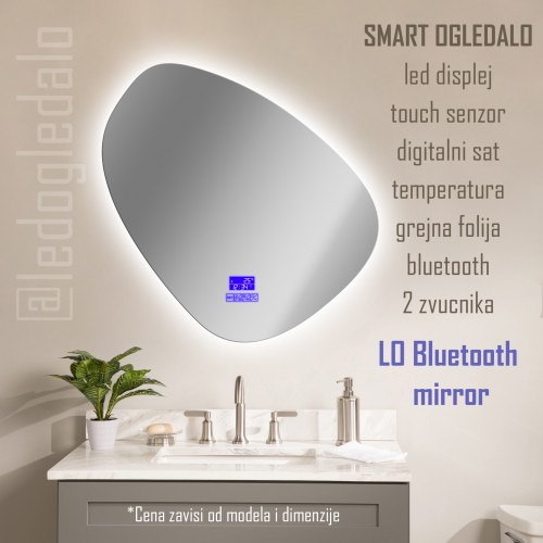 Ogledalo sa ugrađenim LO setom sadrži mini dispej koji poseduje rotirajući meni sa satom I temperaturom. Takođe, ogledalo poseduje antifog grejač ( 20x30cm ) koji se aktivira dodirom na naznačeno mesto I touch za paljenje osvetljenja sa mogućnosti promene inteziteta osvetljenja.